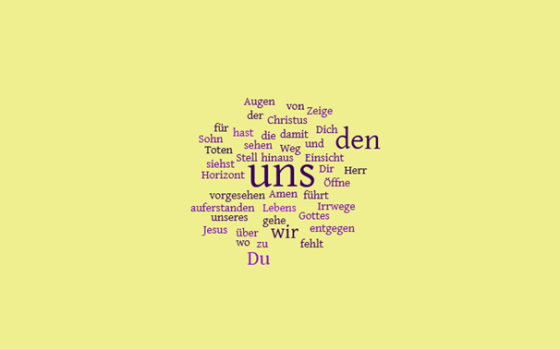 Herr Jesus Christus,Sohn Gottes,auferstanden von den Totensiehst Du über den Horizont unseres Lebens hinaus.Stell Dich uns entgegen,wo uns Einsicht fehltund…