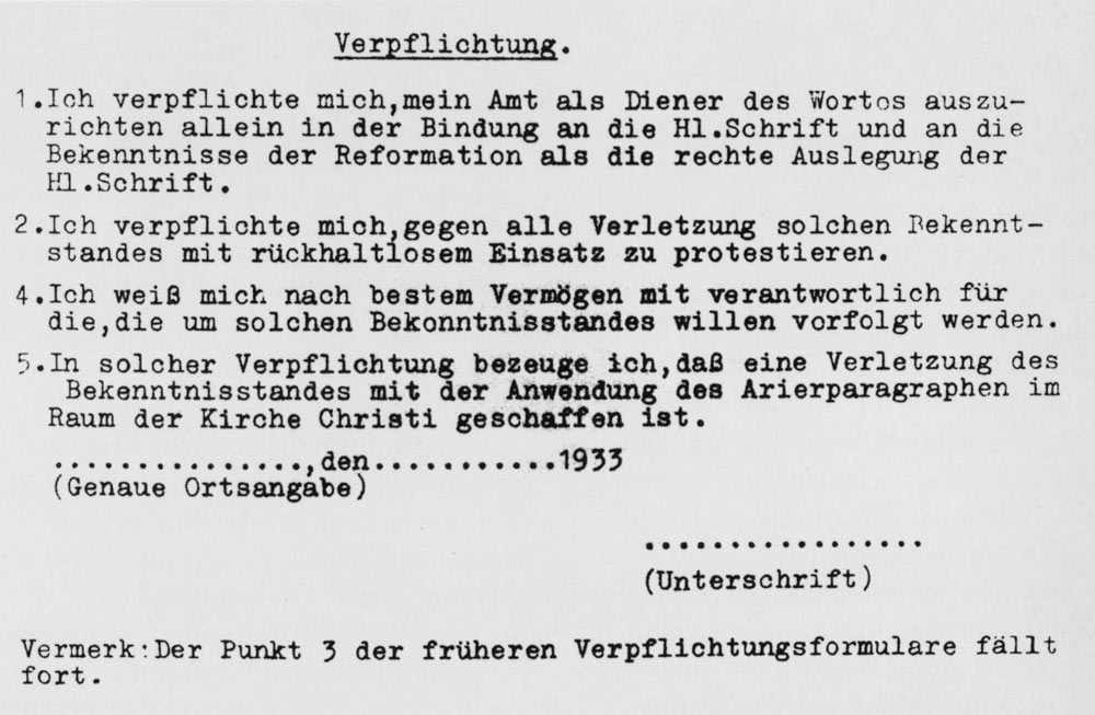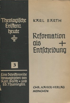 Karl Barth hatte am 30. Oktober 1933 in Berlin vor Mitgliedern des Pfarrernotbundes einen Vortrag „Reformation als Entscheidung“ gehalten (siehe dazu Reformationstag 1933. Dokumente der Begegnung Karl Barths mit dem Pfarrernotbund in Berlin, hrsg. v. Eberhard Busch, Zürich: TVZ 1998), dessen Ausführungen in Sachen Kirche der Reformation für das Reformationsjubiläum 2017 unverändert gelten: