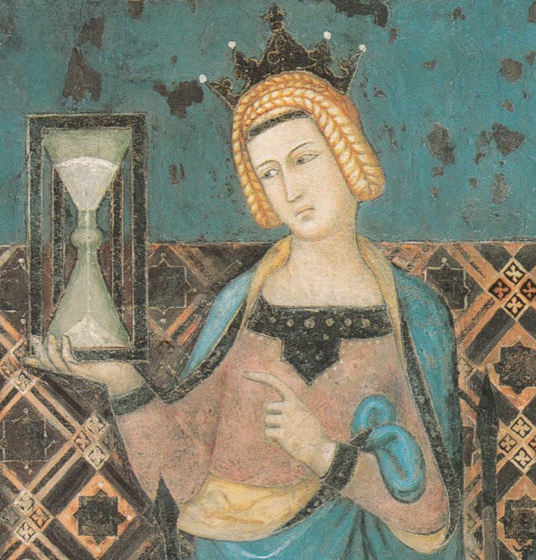 Wider die verrinnende Lebenszeit wird Christus als Mitte der Zeit bekannt: „Nun von dir selbst in Jesus Christ / die Mitte fest gewiesen ist, / führ uns dem Ziel entgegen.“ (1. Strophe) Da lässt sich im Bild der alten Sanduhr auf die Lochblende verweisen, die die beiden Glaskolben miteinander verbindet und durch die der Sand rinnt: Durch Jesus Christus entrinnt mir nicht mein Leben mit der Zeit; es wird vielmehr in Gottes Ewigkeit gefasst. So heißt es abschließend in der 6. Strophe: „Der du allein der Ewge heißt / und Anfang, Ziel und Mitte weißt / im Fluge unsrer Zeiten: / bleib du uns gnädig zugewandt / und führe uns an deiner Hand, / damit wir sicher schreiten.“