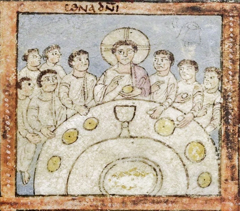 Schon früh entwickelte sich so eine bildmächtige Tradition vom Tisch des Herrn. So zeigt das St.-Augustinus-Evangeliar, das älteste erhaltene Evangeliar in lateinischer Sprache aus dem 6. Jahrhundert[3] Jesus mit seinen Jüngern beim Herrenmahl (cena Domini) um einen halbkreisförmigen Sigma-Tisch sitzend[4].