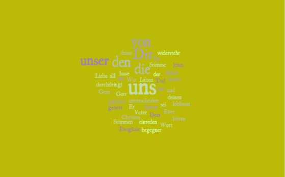 Bernhard Härings Pfingstgebet: „Komm, heiliger Geist, bekehre und reinige und heilige uns, dass wir fähig werden, das Rechte zu sehen und zu tun. Befreie uns von Oberflächlichkeit und Zerstreutheit, die zu allzu vielen unbedachten Worten und Handlungen führen.“