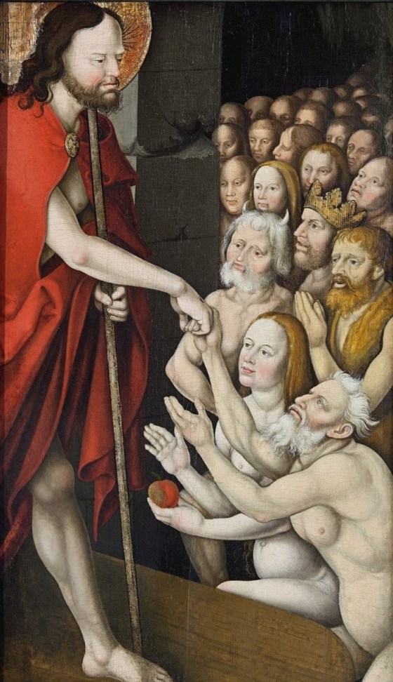 Martin Luthers Predigt über die Höllenfahrt Christi (1532): „Wie dieser Artikel im Wort vorgetragen und mit Bildern vorgemalt wird, dass die Engel vorhergehen und Christus mit der Fahne hinunterfährt, die Höllenpforte zerbricht und zerstört, so erfasse es einfältig. Denn ob es wohl einfältig und grob geredet ist und kindliche Bilder sind, so zeigen uns solche Worte und Bilder doch fein die Kraft und den Nutzen dieses Artikels, wie wir hören werden.“