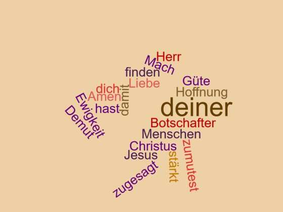 Herr Jesus Christus,Du hast dich uns zugesagt,mit deiner Güte und deiner Demut.Was Du uns zumutest, stärkt uns.Mach uns zu Botschafter … Mehr