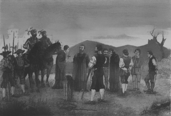 „Schließlich führte ihn der Scharfrichter auf den Platz, er kniete nieder und sprach: ‚Vater, in deine Hände befehle ich meinen Geist‘, und wurde dann hingerichtet.“ Wie die Hinrichtung des Leipheimer Pfarrers Hans Jakob Wehe († 5. April 1525) in der Lebensgeschichte Georg Truchsessen im Stile einer Märtyrerakte erzählt wird