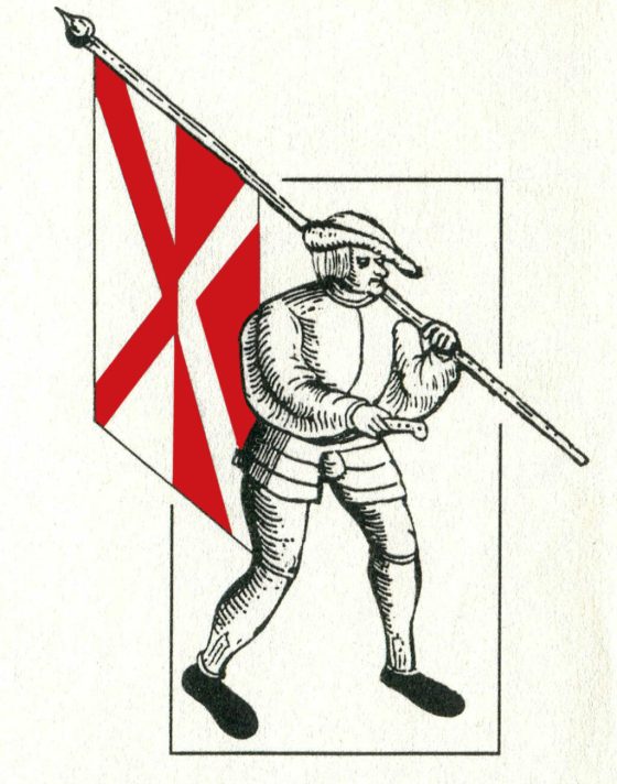 Landesordnung der oberschwäbischen Bauernhaufen vom März 1525: „Die Fahnen sollen rot und weiß sein, ebenso die Zeichen oder Kreuze, die in Andreaskreuz-Form darauf genäht sein sollen. Jedes Quartier oder jeder Teil soll ein eigenes Regiment aufstellen und halten, mit allem, was dazugehört, gemäß dem Kriegsrecht. Jeder Oberste im jeweiligen Teil soll ein besonderes Verständnis und eine Losung mit seinem Regiment, den Unteroberen und den anderen Räten haben, wie es sich gehört. Was die Obersten, Unteroberen, Räte und das Regiment beschließen, anordnen, befehlen oder unternehmen, dem soll die Gemeinde in christlicher Treue gehorsam sein.“