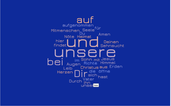 Vater im Himmel,Deinen Sohn hast Du bei Dir aufgenommen,mit Leib und Seele.So findet sich unsere Heimat bei Dir.Richte unsere Sehnsucht … Mehr