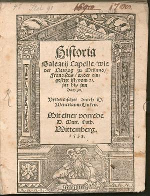 Martin Luther, Vorrede zu Historia Galeatii Capellae (1538): „Die Historien sind nichts anderes als Anzeigung, Gedächtnis und Hinweis göttlicher Werke und Urteile, wie er die Welt, besonders die Menschen, erhält, regiert, hindert, fördert, straft und ehrt, je nachdem ein jeder verdient, Böses oder Gutes. Und wenn es auch viele sind, die Gott nicht erkennen noch achten, so müssen sie doch an den Exempeln und Historien stutzig werden und befürchten, dass es ihnen nicht auch so gehe wie dem und dem, wie sie durch die Historien vor Augen gerückt werden. Dadurch werden sie stärker bewegt, als wenn man sie nur mit bloßen Worten des Rechts oder der Lehre abhält und ihnen damit wehrt.“
