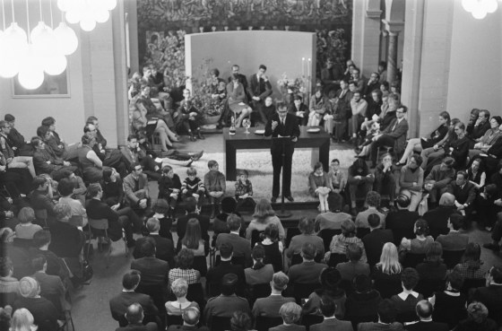 Huub Oosterhuis über das Singen im Gottesdienst (1968): „Singen heißt: sich in ein größeres Ganzes einfügen, einstimmen mit vielen anderen; mit Worten, die man selbst nicht bewahrheiten kann, die man nur gemeinsam mit anderen zu sagen wagt. In einer singenden Gemeinde bin ich mit all meinen Zweifeln dennoch am richtigen Ort.“