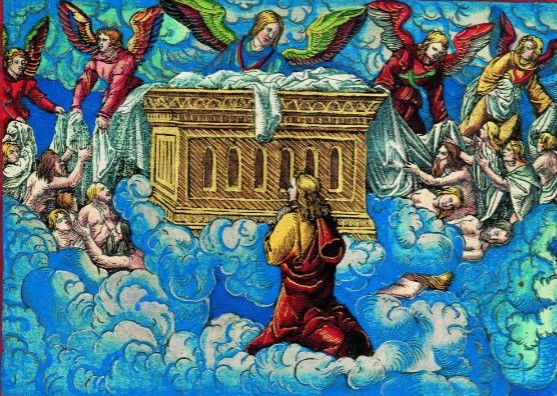 Jürgen Roloff, Die Offenbarung des Johannes: „Im gekreuzigten und erhöhten Christus kommt Gottes Herrschaft über Welt und Geschichte zu ihrem heilvollen Ziel – so läßt sich der Leitgedanke der »Offenbarung« zusammenfassen. Die Szene im himmlischen Thronsaal (4,1 bis 5,14), die den Reigen der Visionen eröffnet, markiert zugleich die theologische Mitte des Buches. In ihr findet die Frage, wer den Geschichtsplan Gottes – symbolisch dargestellt in der siebenfach versiegelten Schriftrolle – enthüllen und in Kraft zu setzen vermag, ihre Antwort.“
