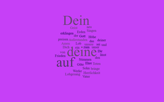 Gott, unser Vater,Dich preisen deine Werke.Dein Sohn lässt das Lob nicht im Tod verstummen.Dein Geist bringe unsere Stimmen zum Singen … Mehr