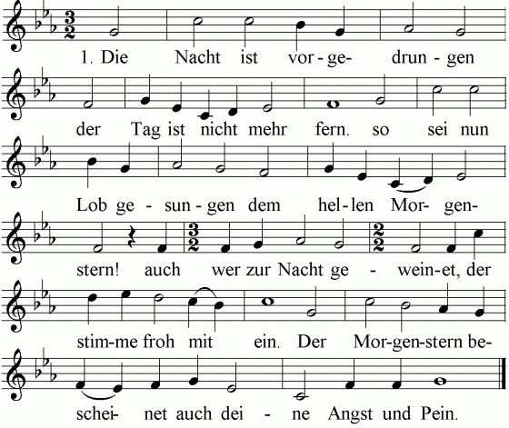 Jochen Klepper, Trostlied am Abend (1940): „In jeder Nacht, die mich bedroht, / ist immer noch dein Stern erschienen. / Und fordert es, Herr, dein Gebot, / so naht dein Engel, mir zu dienen. / In welchen Nöten ich mich fand, / du hast dein starkes Wort gesandt.“