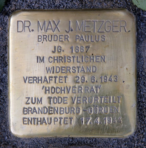 Max Josef Metzgers letzter Brief vor seiner Hinrichtung am 17. April 1944: „Nun will der Herr von mir das Lebensopfer. Ich sag mein frohes Ja zu seinem Willen. Ich hab’ Ihm ja das Leben angeboten für den Frieden der Welt und die Einheit der Kirche – Er will es haben. Möchte er es segnen!“