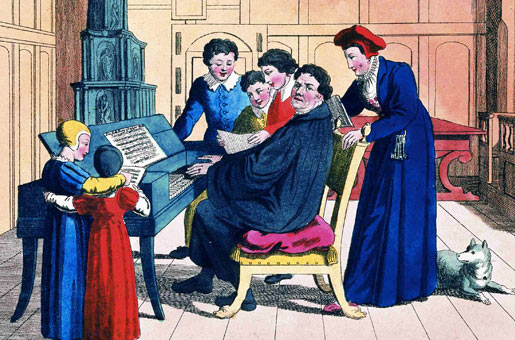 Martin Luther, Entwurf zum Lobpreis der Musik (Encomion musices, 1538): „In summa die edle Musica ist nach Gottes wordt / der höchste Schatz auff Erden. Sie regiret alla Gedanken / sinn / hertz und muth. Wilstu einen betrübten frölich machen / einen frechen wilden Menschen zeumen das er gelinde werde / einem zaghafftigen einen muth machen / einen hoffertigen demütigen / und dergleichen / was kann besser dazu dienen / denn diese hohe / theure / werde und edle kunst.“