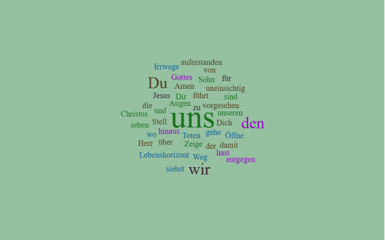 Herr Jesus Christus,Sohn Gottes,auferstanden von den Totensiehst Du über unseren Lebenshorizont hinaus.Stell Dich uns entgegen,wo wir uneinsichtig sindund Irrwege gehe.Öffne … Mehr
