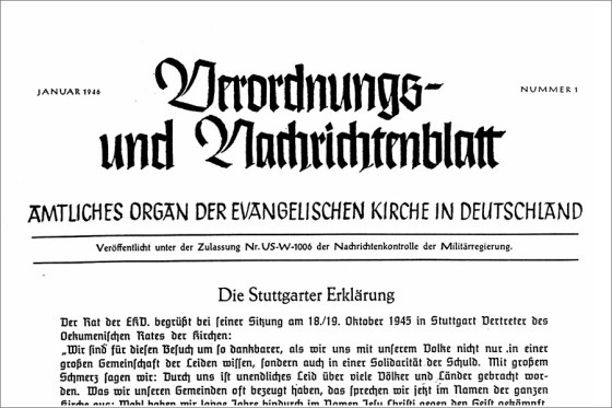 Martin Niemöllers Predigt über Jeremia 14,7-11 zum Stuttgarter Schuldbekenntnis 1945: „Unsere Schuld als Christen, liebe Gemeinde, ist viel größer als die Schuld der Nazis, des deutschen Volkes und der Militaristen. Wir Christen haben ja um den rechten Weg gewusst. Die andern haben sich ihre eigenen Wege ausgedacht. Wir wussten, es gibt einen, den zeigt Gott in seinen heiligen Geboten, in dem Leben und Sterben unseres Herrn und Heilandes Jesu Christi. Das ist der rechte Weg, den haben wir zu bezeugen, den haben wir zu leben und haben es unserem Volk vorzuhalten. O, unsere große Schuld!“