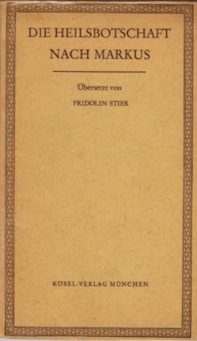 Walter Jens‘ Rezension von Fridolin Stiers Übersetzung des Markus-Evangeliums von 1965: „diese Übersetzung vom Geist Martin Luthers, von seiner Kenntnis und von seiner Wortgewalt, erfüllt zu sein scheint“